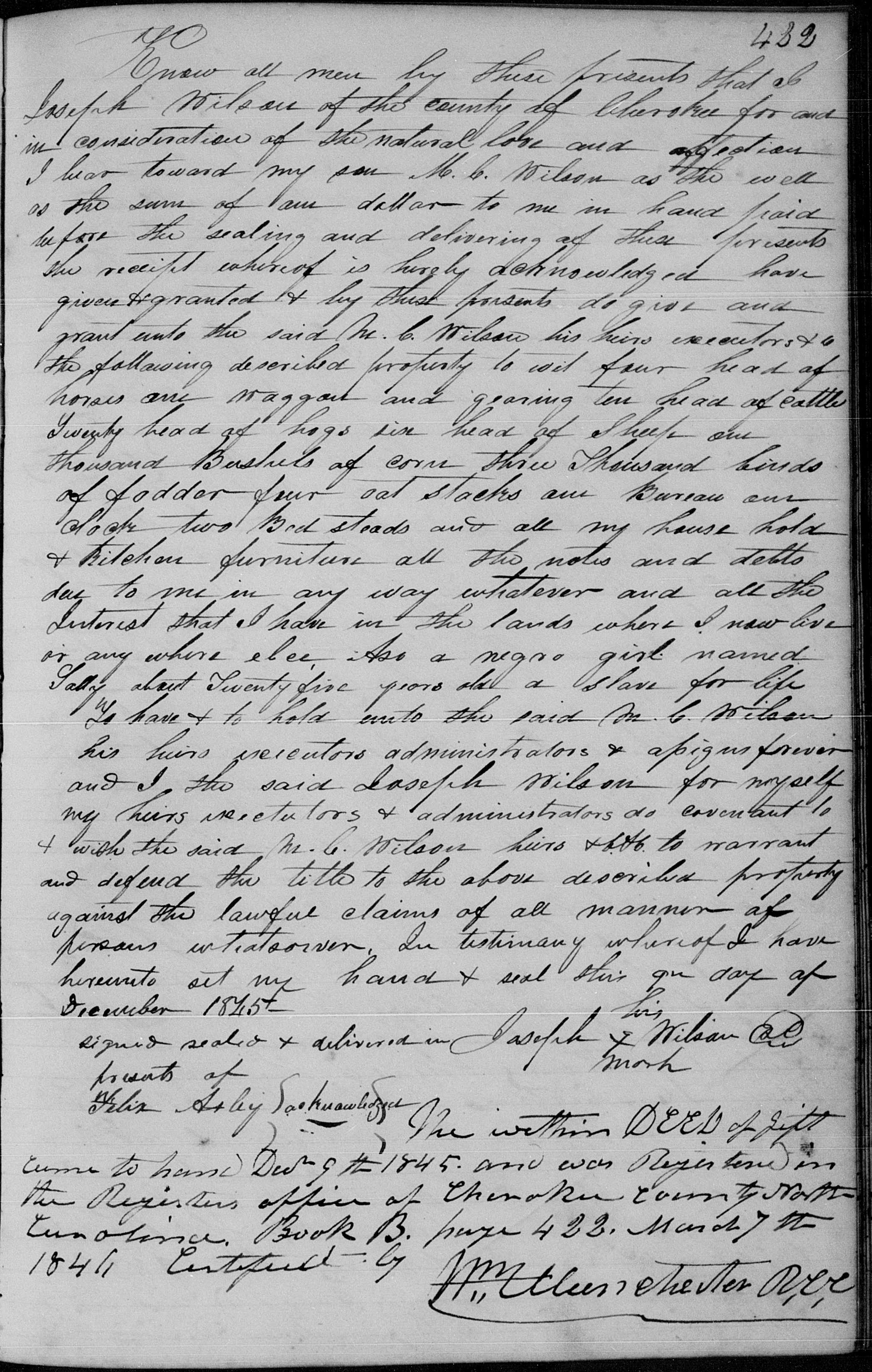 Joseph Wilson gave his son many belongings including Lilly, a slave for life about 25 years old